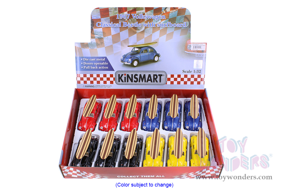 Kinsmart - Volkswagen Beetle Hardtop w/ Surfboard (1967, 1/32 scale diecast model car, Asstd.) 5057DS1