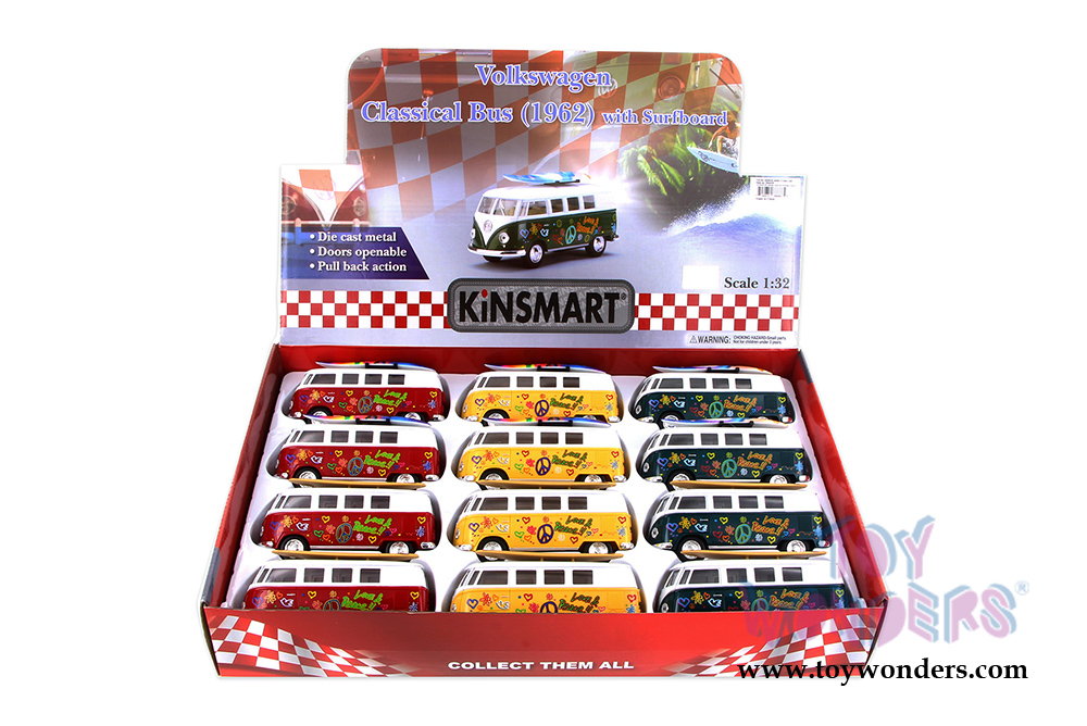 Kinsmart - Volkswagen Classic Bus with Surfboard (1962, 1/32 scale diecast model car, Asstd.) 5060DS