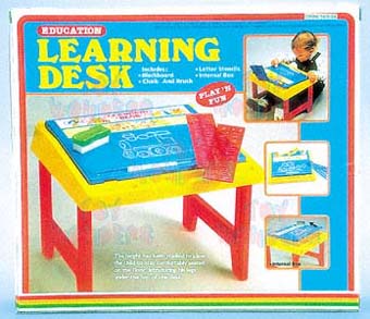 822/3 Learning Desk. 15" learning desk for children. Includes blackboard, chalk & brush, letter stencils & more. Box size: 13.25"Lx3"Wx11.25"H. 6 pcs/inner.