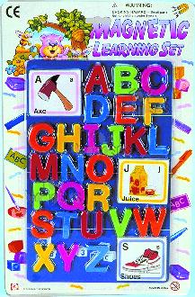 530LJ Learning Set. Set includes alphabet A through Z with learning flash cards. Learning board included. Perfect for use on refrigerator. Letters are 1.38" (3.5 cm) tall. Card size: 9.25"x14.5". 12 pcs/inner.
