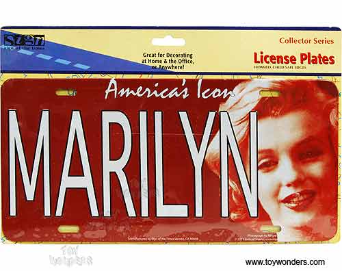 L12070 License Plate - America's Icon Marilyn Monroe embossed aluminum metal sign. A collection of license plates. Great for decorating vehicles, homes, offices, restaurants, etc. Sturdy aluminum. This license plate is approximately 6" x 12" with shrink wrap and pre-drilled holes. Each license plate is individually blister carded. Card size: 12.1"L x 8"W.