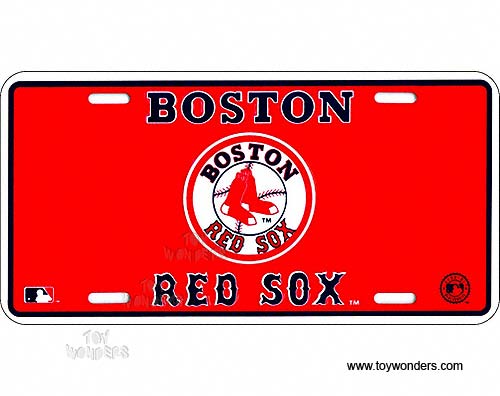 SLBRS2 License Plate - Boston Red Sox Baseball Red embossed aluminum metal sign. A collection of Boston Red Socks Baseball license plates. Great for decorating vehicles, homes, offices, restaurants, etc. Sturdy aluminum. This license plate is approximately 6" x 12" with shrink wrap and pre-drilled holes.