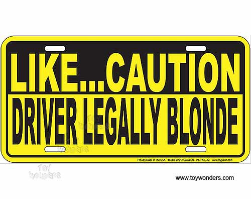 SLLB License Plate - Driver Legally Blonde embossed aluminum metal sign. A collection of license plates. Great for decorating vehicles, homes, offices, restaurants, etc. Sturdy aluminum. This license plate is approximately 6" x 12" with shrink wrap and pre-drilled holes.