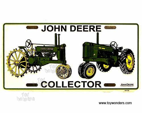 SLJDC License Plate - John Deere Collector Farm Tractor embossed aluminum metal sign. A collection of farm tractors. Great for decorating vehicles, homes, offices, restaurants, etc. Sturdy aluminum construction. This license plate is approximately 6" x 12" with shrink wrap and pre-drilled holes.