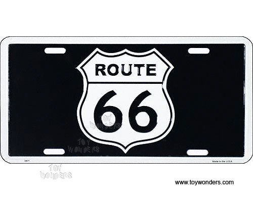 SLRT6S License Plate - Route 66 Shield Black embossed aluminum metal sign. A collection of US Highway Route-66. Great for decorating vehicles, homes, offices, restaurants, etc. Sturdy aluminum construction. This license plate is approximately 6" x 12" with shrink wrap and pre-drilled holes.