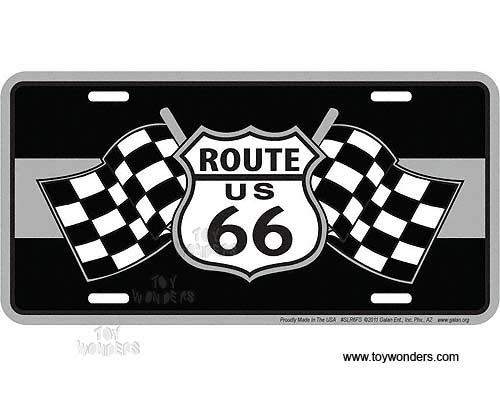 License Plate: Route 66 w/ Racing Flags Sign SLR6FS