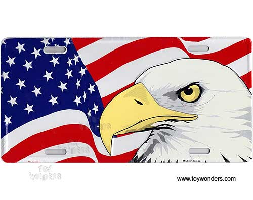 SLAFE License Plate - US Flag Waving with Eagle embossed aluminum metal sign. A collection of license plates. Great for decorating vehicles, homes, offices, restaurants, etc. Sturdy aluminum. This license plate is approximately 6" x 12" with shrink wrap and pre-drilled holes.