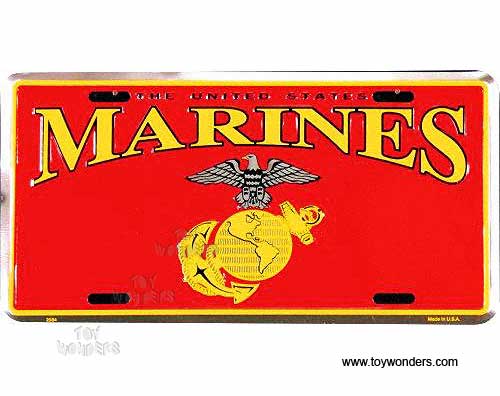 SLMM2 License Plate - United States Marines Red embossed aluminum metal sign. A collection of US Marines signs. Great for decorating vehicles, homes, offices, restaurants, etc. Sturdy aluminum. This license plate is approximately 6" x 12" with shrink wrap and pre-drilled holes.