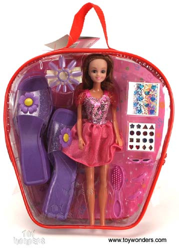 4769 Lorna Doll Beauty Set with Shoes. 11.5" lorna fashion doll with a pair of sandals for child and some beauty accessories. 12 pcs/inner. Package size: 11.25"L x 2.5"W x 11.75"H.