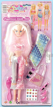 1174 Lorna Doll Play Set. 12" fashion doll with rooted hair. Set also include 2 outfits, purse, shoes, sunglasses, comb, and other accessories. Card size: 7.5"x16".