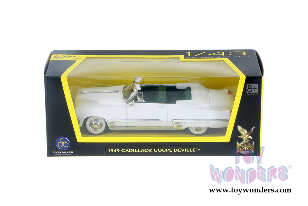 94223W Lucky Road Signature - 1949 Cadillac Coupe deVille Convertible. 1:43 scale diecast collectible model car. This Cadillac Coupe de Ville is a 5"Lx 1.75"Wx 1.25"H diecast metal car. Lucky Road Signature collection. This 1949 Cadillac Coupe de Ville is manufactured by Lucky Die Cast Products Factory LTD. 94223W is in WHITE. Individually packed in a window box. Box size: 6"Lx 2.5"Wx 2.5"H. 12 pcs per inner. GM is a trademark of the General Motors Corporation.