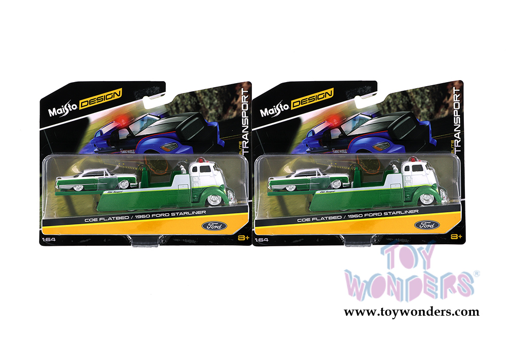 Maisto All Stars Elite Transport - COE Flatbed/Ford Starliner Hard Top (1960, 1/64 scale diecast model car, Red/Black) 15055STA