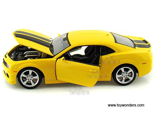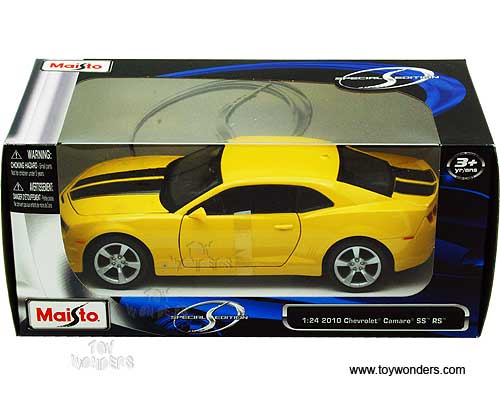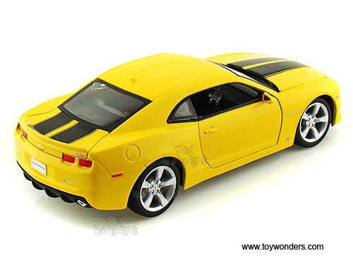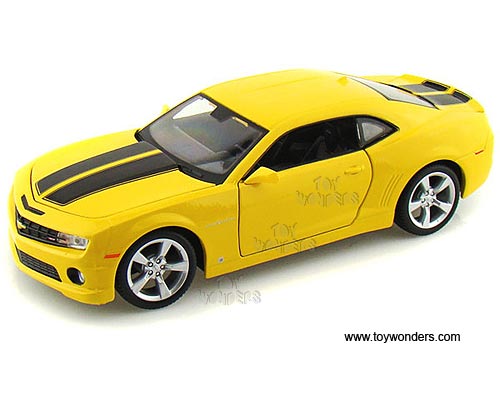 31207YL Maisto - 2010 Chevrolet Camaro SS RS Bumblebee Hardtop. 1:24 scale diecast collectible model car. This Chevy Camaro SS RS is a 7.5"L x 2.75"W x 2"H diecast metal car with freewheeling, openable doors and hood. Each individually packed in a window box. Window Box size is 9"L x 4.5"W x 4"H. 31207YL is in YELLOW color with black stripes. This 2010 Chevrolet Camaro SS RS Bumblebee is manufactured by Maisto. GM is a trademark of the General Motors Corporation.