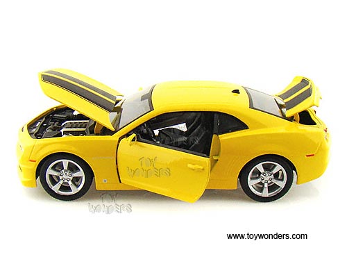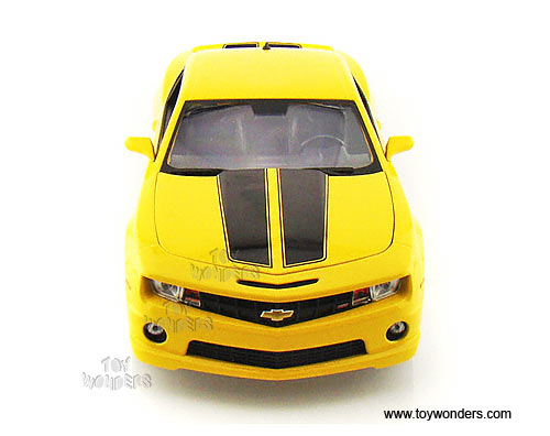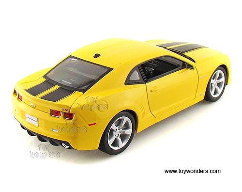 31173YL Maisto Special Edition - 2010 Chevy Camaro SS RS Hardtop. 1:18 scale diecast collectible model car. This Chevy Camaro Bumblebee is a 10.25"L x 3.75"W x 3"H with openable doors, hood, and trunk featuring a detailed interior. Sits on a display plaque. This Chevrolet Camaro SS RS Bumblebee is manufactured by Maisto. 31173YL is in YELLOW color with Black stripes. Individually packed in a window box. Box size: 13"L x 6.5"W x 5"H. GM is a trademark of the General Motors Corporation.
