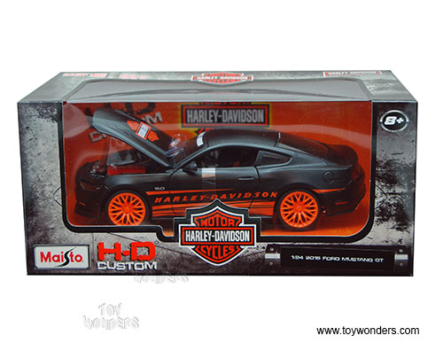 32188BK Maisto HD Custom - 2015 Ford Mustang GT. 1:24 scale diecast collectible model car. This Mustang is a 7.25"L x 2.75"W x 2"H diecast metal with openable doors and hood. This 2015 Ford Mustang GT is manufactured by Maisto. H.D. Custom. Individually packed in a window box. Window Box size: 9.5"L x 5.25"W x 4.25"H. 32188BK is in BLACK with Orange color.