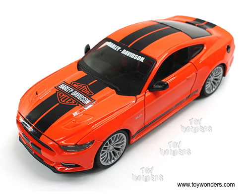 32188OR Maisto HD Custom - 2015 Ford Mustang GT. 1:24 scale diecast collectible model car. This Mustang is a 7.25"L x 2.75"W x 2"H diecast metal with openable doors and hood. This 2015 Ford Mustang GT is manufactured by Maisto. H.D. Custom. Individually packed in a window box. Window Box size: 9.5"L x 5.25"W x 4.25"H. 32188OR is in ORANGE color with Black stripes.