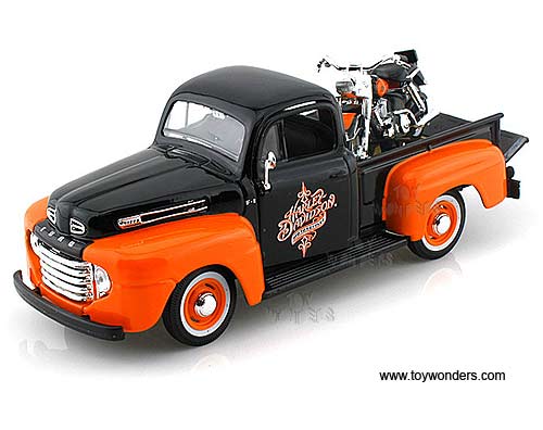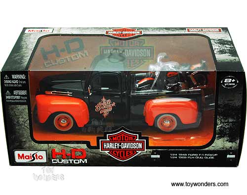 Maisto HD - Ford F-1 Pickup Harley-Davidson / FLH DUO Glide Motorcycle (1948/1958, 1/24 scale diecast model car/1/24 scale diecast model car, Black & Orange) 32180BO