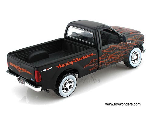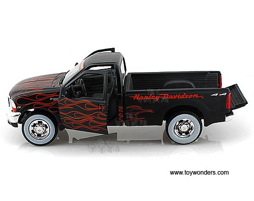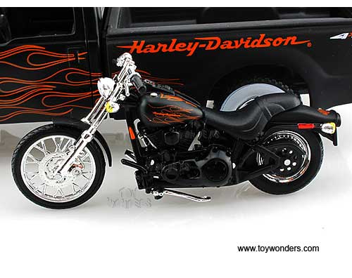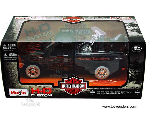 Maisto HD - Ford F-350 Super Duty Pickup Harley-Davidson / FXSTB Night Train Motorcycle (1999/2002, 1/27 scale diecast model car/1/24 scale diecast model car, Black w/ Flames) 32181BK