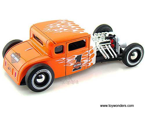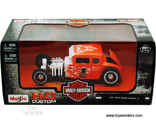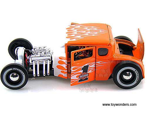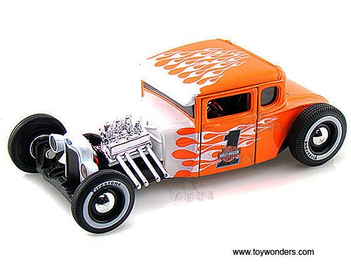 Maisto HD - Ford Model A Hard Top Harley-Davidson #1 (1929, 1/24 scale diecast model car, Orange w/ Flames) 32175OW