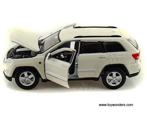 31205W Maisto - Jeep Grand Cherokee Laredo SUV. 1:24 scale diecast collectible model car. This Jeep Grand Cherokee Laredo is a 7.5"Lx 3"Wx 2.75"H die cast metal car with free wheeling, openable doors & hood. Each individually packed in a window box WB, and box size is 9"Lx 4.5"Wx 4"H. 31205W is in WHITE color. This Jeep Grand Cherokee Laredo sports utility vehicle is manufactured by Maisto.
