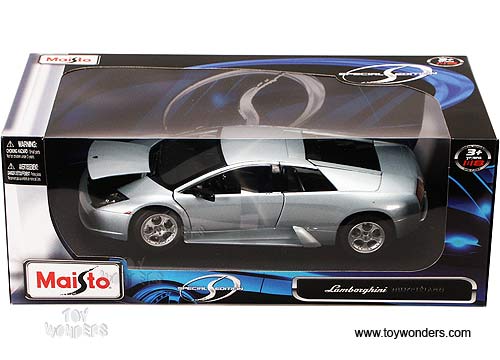 31638BU MAISTO Special Edition - Lamborghini Murcielago. 1:18 scale diecast model car. 9.5" long diecast car with opening doors/hood/trunk. Steering wheels. Maisto. Special edition. 31638 in light BLUE color. Individually packed in a window box.