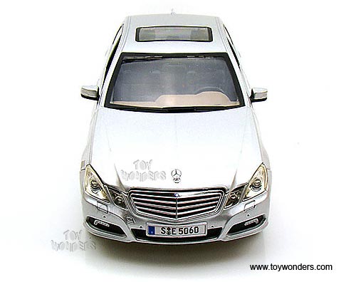 31172 Maisto Special Edition - 2009 Mercedes Benz E-Class Hard Top with Sunroof. 1:18 scale diecast collectible model. This Mercedes-Benz E-Class is a 10.25"L x 3.5"W x 3.25"H diecast car with openable doors, hood & trunk. Sits on a display plaque. This Mercedes Benz E-Class Manufactured by Maisto. Individually packed in a window box. Box size: 13"L x 6.5"W x 5"H. 31172 is in SILVER color.