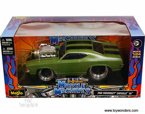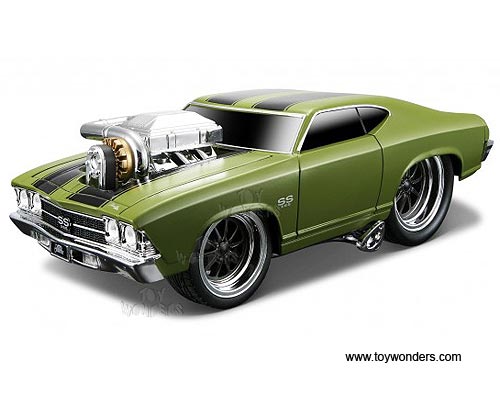Maisto Muscle Machines - Chevy Chevelle SS w/ Engine Blower (1969, 1/24 scale diecast model car, Green w/ Stripes) 32238