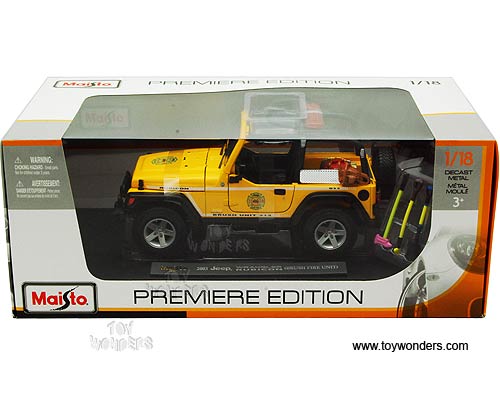 Maisto Premiere - Jeep Wrangler Rubicon w/ Brush Fire Unit (1/18 scale diecast model car, Yellow) 36115