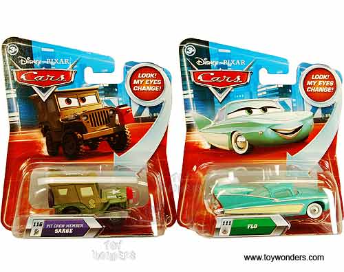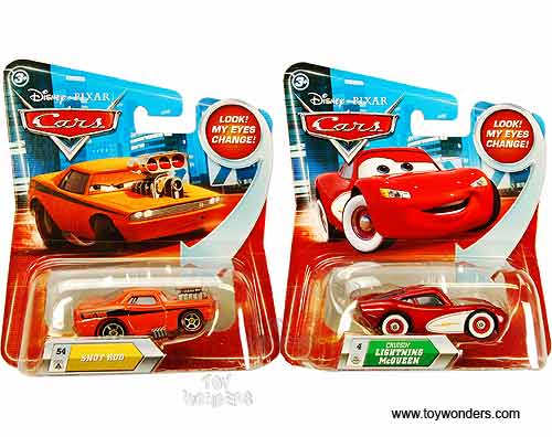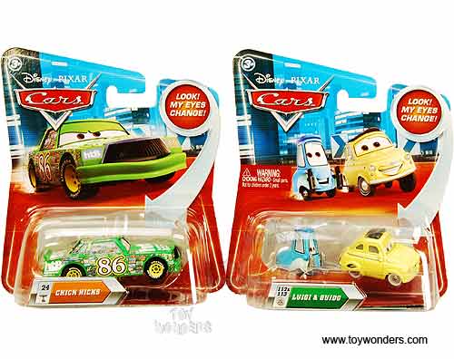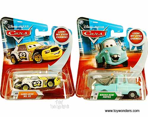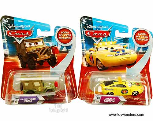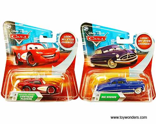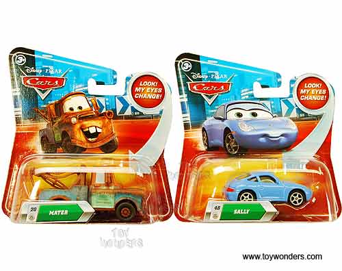P7001/999G Mattel Disney Pixar - Cars w/ Eyes Change Assortment. 3" long approximately diecast collectible model cars. These Disney cars are manufactured by Mattel. Each car individually blister carded. Card size: 5.5" x 6". Assortment includes the following cars: