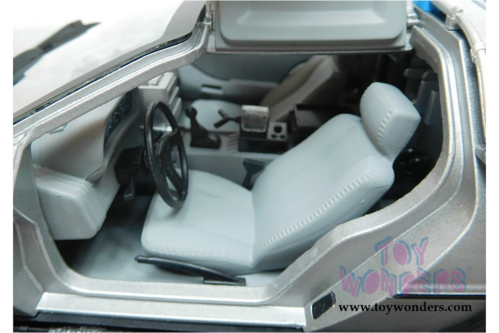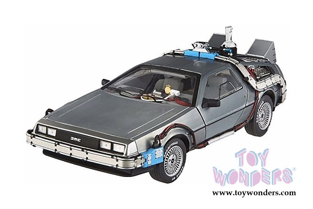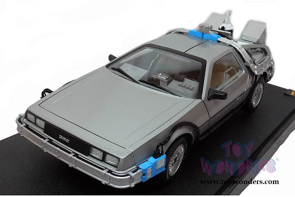 CMC98 Mattel Hot Wheels - Back to The Future Time Machine with Opening Mr. Fusion & Extras. 1:18 scale diecast collectible model car. Hot Wheels diecast collection. Free wheeling and opening doors (hood and trunk do not open). This DMC Delorean is 10"L x 4"W x 3"H. Individually packed in box. Box size is 13.5"L x 6.75"W x 5"H. Manufactured by Mattel.