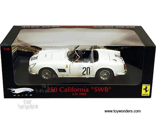 Mattel Hot Wheels Elite - Ferrari 250 California "SWB" LM 1969 Convertible #20 (1/18 scale diecast model car, White) T6931/9964