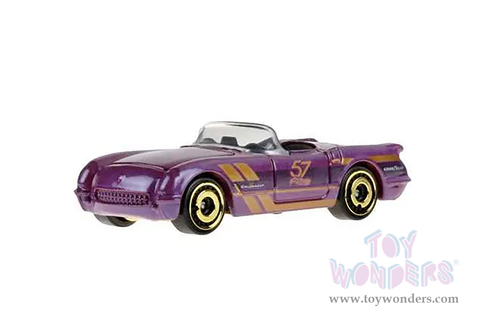HDH54956G Mattel Hot Wheels - Pearl  & Chrome Assorted - 57th Anniversary Series. Diecast collectible model cars. These cars are approximately 2.75"-3.125" long diecast metal cars. Manufactured by Mattel. Each car individually blister carded. Card size: 4.25" x 6.5".