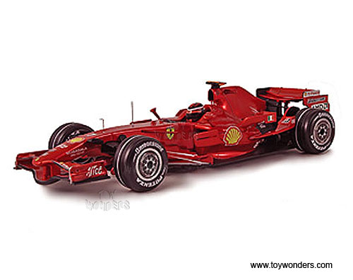 L8780/9964 Mattel Hot Wheels Racing - Ferrari Spanish Grand Prix 27.04.2008 Hat Trick. 1:18 Scale diecast collectible model car. Kimi Raikkonen's Hat Trick Racing Car. This Ferrari F-1 is approximately 10" long die cast metal racing car. Sponsored by Alice, AMD, Bridgestone, Shell, acer, Fiat, and more. This Ferrari F 1 Formula is manufactured by Mattel. L8780/9964 is in RED color. Individually packed in a box. Box size: 13.25"L x 6.75"W x 5"H.