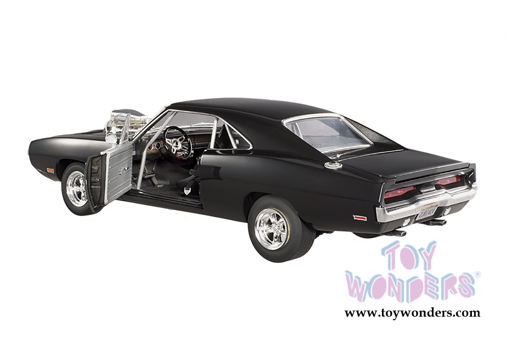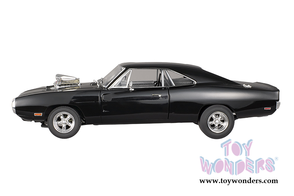 CMC97 Mattel Hot Wheels - The Fast & The Furious 1970 Dodge Charger. 1:18 Scale diecast collectible metal car with openable side doors. This Dodge Charger is an 11"L x 4"W x 3"H long die-cast metal car, free wheeling with blown hemi engine and racing gauges. Individually packed in a window box. Box size: 13.25"L x 6.75"W x 5"H. Manufactured by Mattel. CMC97 is in BLACK.