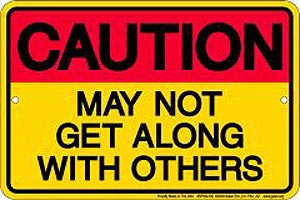 SPSALNG Caution - May Not Get Along with Others metal sign. A collection of yesterday's signs. Great for decorating homes, offices, restaurants, etc. Aluminum metal sign. Size approximately is 8" x 12".
