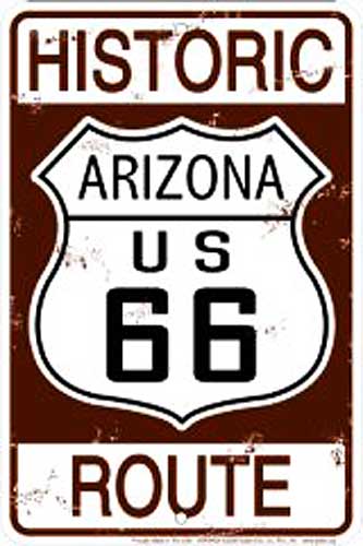 SPSR6H Historic Arizona US Route 66 metal sign. Rt 66 Collector metal signs. A collection of yesterday's signs. Great for decorating homes, offices, restaurants, etc. Aluminum metal sign. Size approximately is 8" x 12".