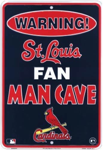 SPS80050 St. Louis Cardinals Fan Man Cave metal sign. A collection of yesterday's signs. Great for decorating homes, offices, restaurants, etc. Aluminum metal sign. Size approximately is 8" x 12".