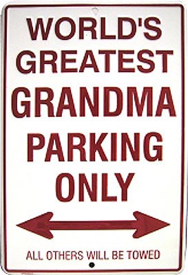 SPSGMA World's Greatest Grandma Parking Only metal sign. A collection of yesterday's signs. Great for decorating homes, offices, restaurants, etc. Aluminum metal sign. Size approximately is 8" x 12".