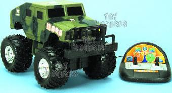06288 Military Troop Carrier. 10.5" wire controlled all terrain truck that can go forward, stop, reverse & turn in reverse. Requires 3 "C" batteries. Box size: 17.25"L x 7.5"W x 8.25"H. Note: This item contains no diecast metal.