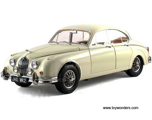 10003 Model Icons - 1962 Jaguar Mark II Hard Top. 1:18 scale diecast collectible model car. This 1962 Jaguar Mk2 is a 9.75"L x 3.75"W x 3"H die cast metal with openable doors, hood & trunk. This 1962 Jaguar Mark II is manufactured by Model Icons. Individually packed in a box. Box size: 11.75"L x 5.75"W x 4.5"H. 10003 is in CREAM color.