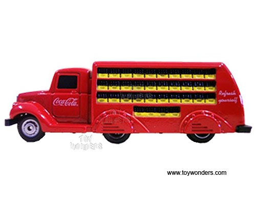 424132 Motor City Coca-Cola - 1937 Coca Cola Bottle Delivery Truck. 1:87 scale diecast collectible model car. This Coca-Cola Bottle Truck is a 4" long die cast metal car. Individually packed in a window box. Box measures 5.25"Lx 1.75"Wx 2"H. This 1937 Coca-Cola Bottle Truck is manufactured by Motorcity Classics.