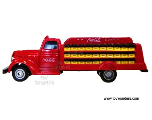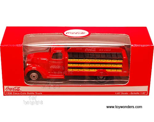 424133 Motor City Coca-Cola - Coca Cola Bottle Delivery Truck. 1:87 scale diecast collectible model car. This Coca-Cola Bottle Truck is a 4" long die cast metal car. Individually packed in a window box. Box measures 5.25"Lx 1.75"Wx 2"H. This 1938 Coca-Cola Bottle Truck is manufactured by Motorcity Classics.