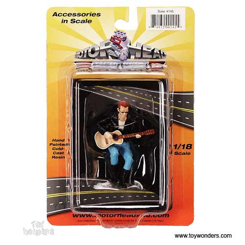 145BK Motorhead Miniatures Figurine - 1:18 scale Duke in BLACK shirt & BLUE pants. Hand painted cold-cast resin. This figure is about 2.75" height and great for decorating 1:18 scale cars and dioramas. Manufactured by Motorheads. Individually packed in a blister card. Card size: 5.2" x 7.75". 145