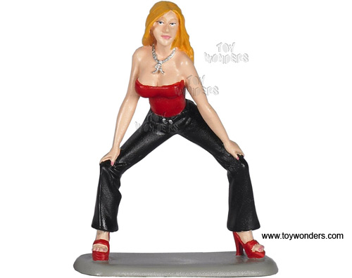 139R Motorhead Miniatures Figurine - 1:24 scale Fast Woman Ashley in RED & BLACK. Hand painted cold-cast resin. This 2.25" figure is great for decorating 1:24 scale cars and dioramas. These figures are manufactured by Motorheads. Individually packed in a blister card. Card size: 5.2" x 7.75". 139