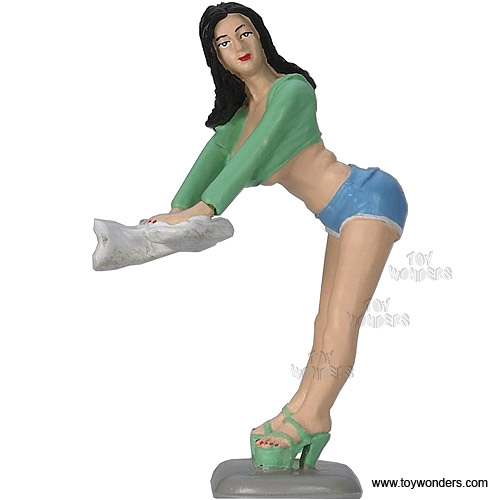 255GN Motorhead Miniatures Figurine - 1:24 scale Fast Woman Kaitlyn in Green shirt & BLUE shorts. Hand painted cold-cast resin. This 2.5" figure is great for decorating 1:24 scale cars and dioramas. These figures are manufactured by Motorheads. Individually packed in a blister card. Card size: 5.2" x 7.75". 255