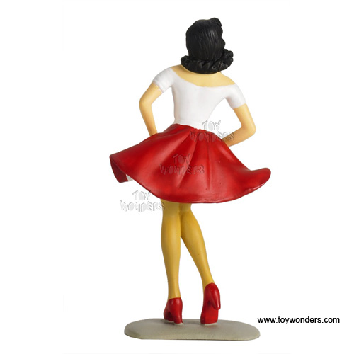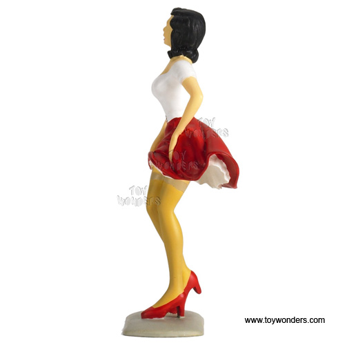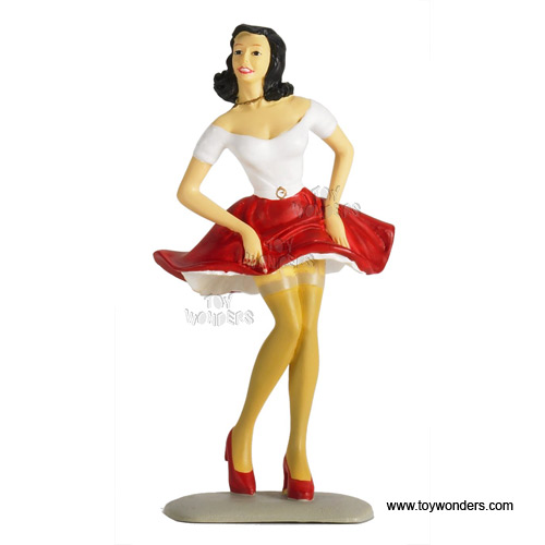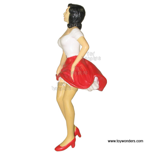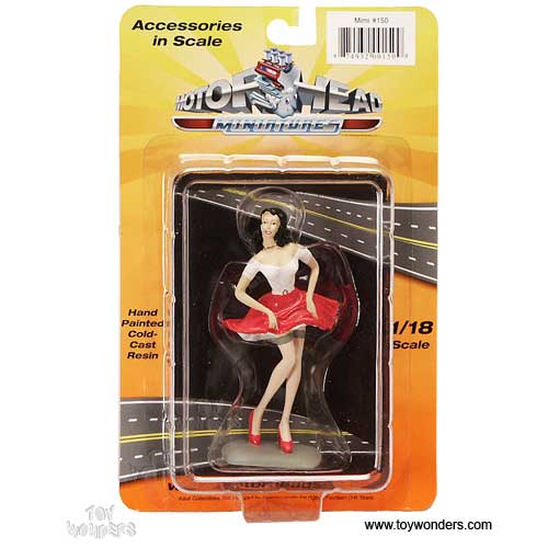 150W Motorhead Miniatures Figurine - 1:18 scale Lady Mimi in WHITE shirt & RED skirt. Hand painted cold-cast resin. This figure is about 4" height and great for decorating 1:18 scale cars and dioramas. These figures are manufactured by Motorheads. Individually packed in a blister card. Card size: 5" x 7.75". 150
