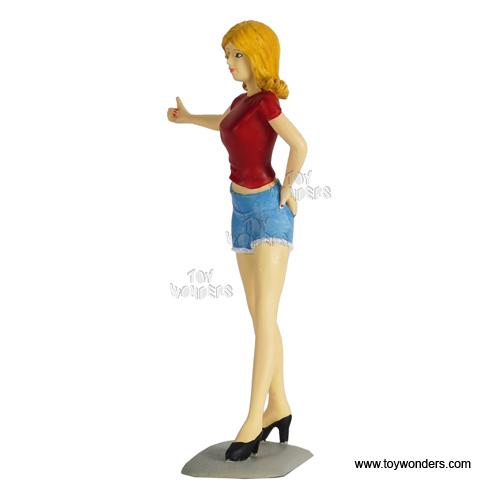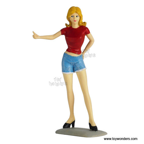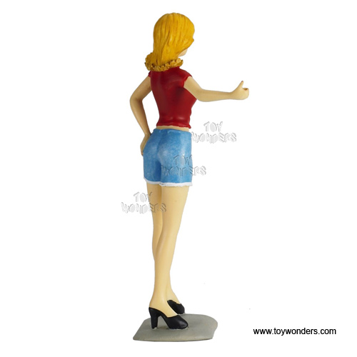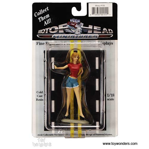 155R Motorhead Miniatures Figurine - 1:18 scale Lady Missy in RED. Hand painted cold-cast resin. This 4" figure is great for decorating 1:18 scale cars and dioramas. Manufactured by Motorheads. Individually packed in a blister card. Card size: 5.2" x 7.75".
