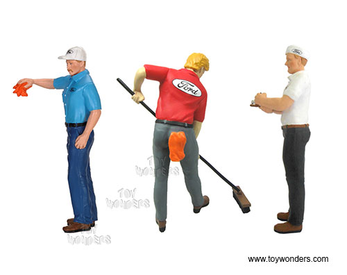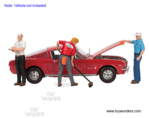 170 Motorhead Miniatures Figurines - 1:18 Ford Service Center Set of 3. Hand painted cold-cast resin. These figures are great for decorating 1:18 scale cars and dioramas. This set includes three 3.75" figures. Manufactured by Motorheads. Packed in a blister card. Card size:7.75"x 7.75". 12 sets per inner. Limited editions. Note: Vehicle is not included.