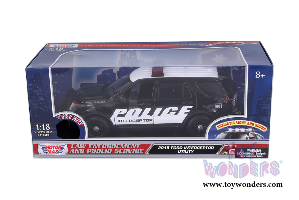 Motormax - Ford Police Interceptor Utility w/ Lights & Sounds (2015, 1/18 scale diecast model car, Black) 73994