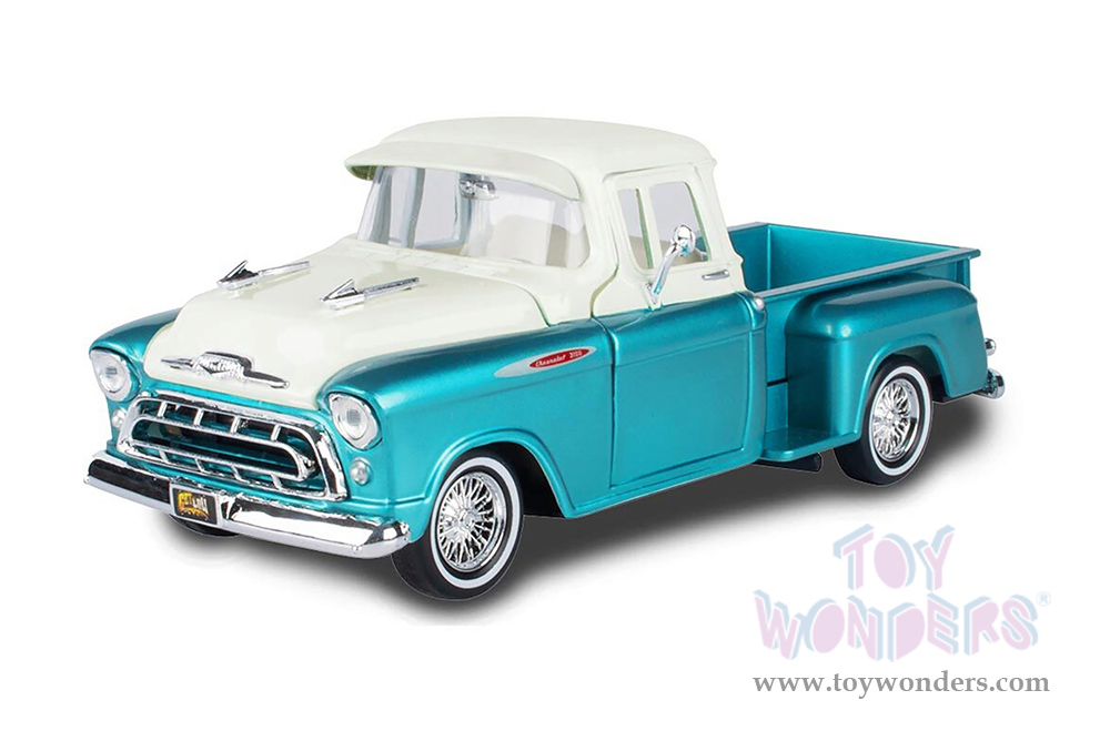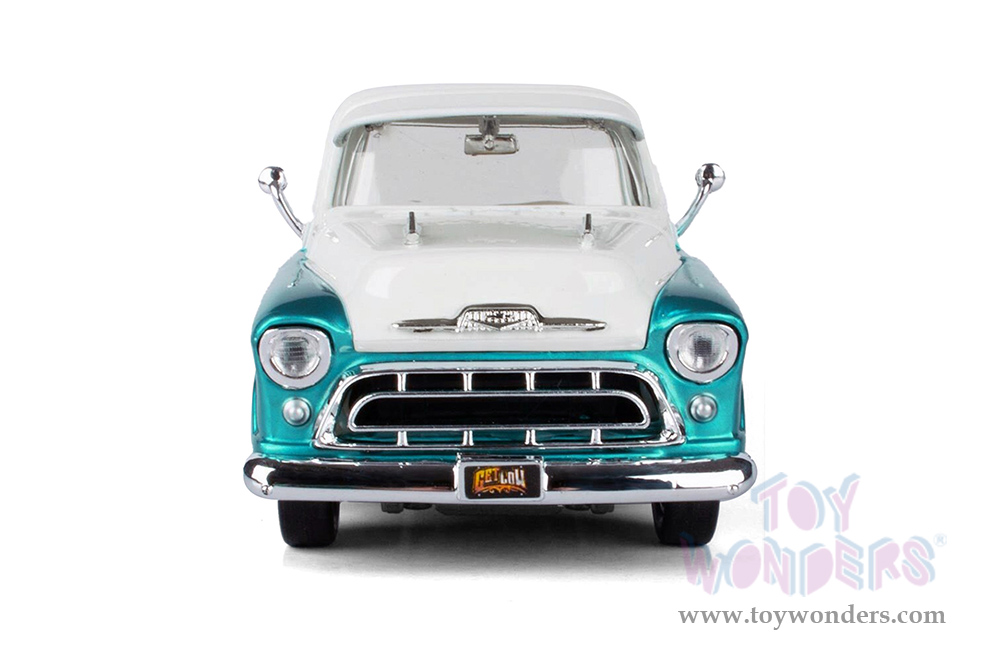 Motormax Get Low - Chevrolet® 3100 Stepside™ Pickup Truck (1957, 1/24 scale diecast model car, Turquoise/White) 79032WL